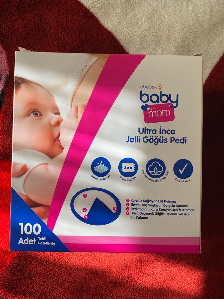Baby Mom ultra ince jelli göğüs pedleri 100 adetlik pakette. Kuruluk, emicilik ve konfor sağlayan çok katmanlı yapıya sahiptir. Cildi korur ve sağlıklı tutar. Kutusu bile açılmadı