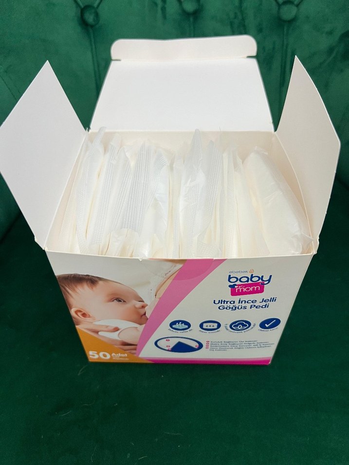 Baby Mom Ultra İnce Jelli Göğüs Pedleri, 50 adetlik pakette, emzirme sırasında rahatlık ve emicilik sağlar. Açık beyaz renkte, gizli koruma sunar. İçinden 5 adet kulanıldı 45 adet var.