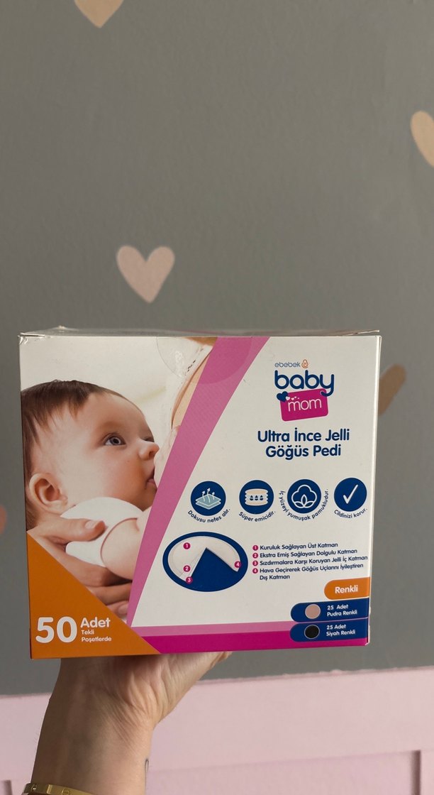 Baby Mom Ultra İnce Jelli Göğüs Pedi, ekstra emici ve cilt dostu katmanlarla yumuşak koruma sağlar. Pastel bej renkte, 50 adet içerir.
