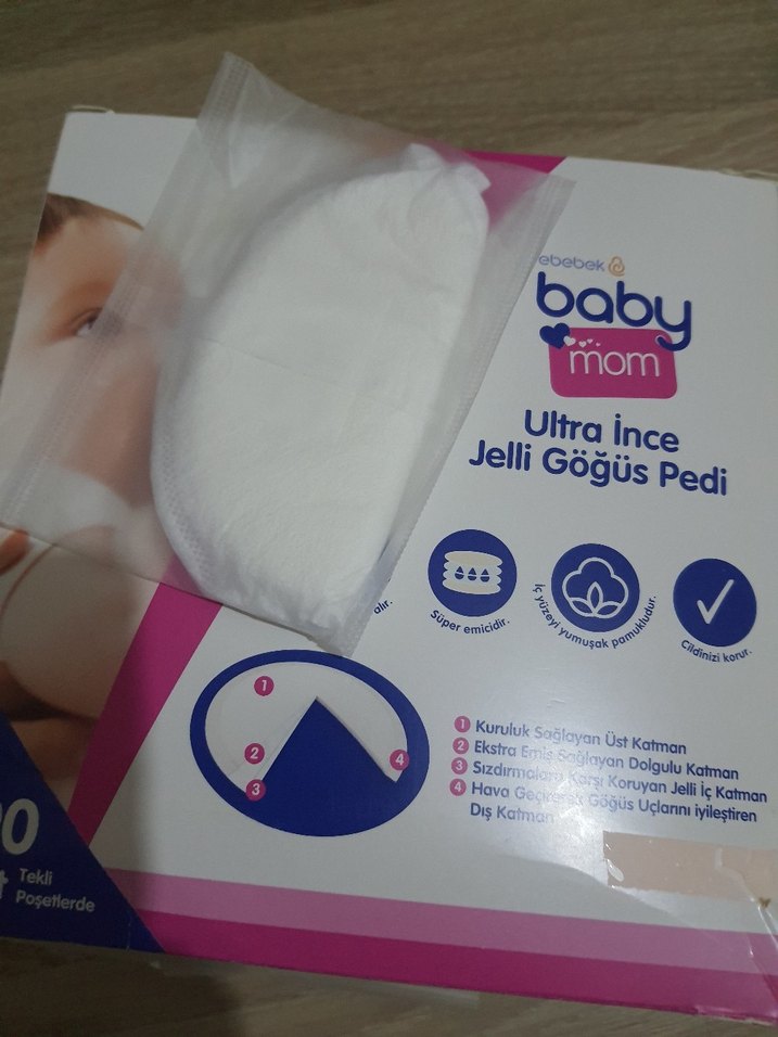 Baby Mom ultra ince beyaz jelli göğüs pedleri, süper emicilik ve konfor sağlar. Nem kontrolü ve cilt koruması için tasarlanmıştır. içerisinde 50den fazla vardır. ihtiyacım olmadığı için satiyorum