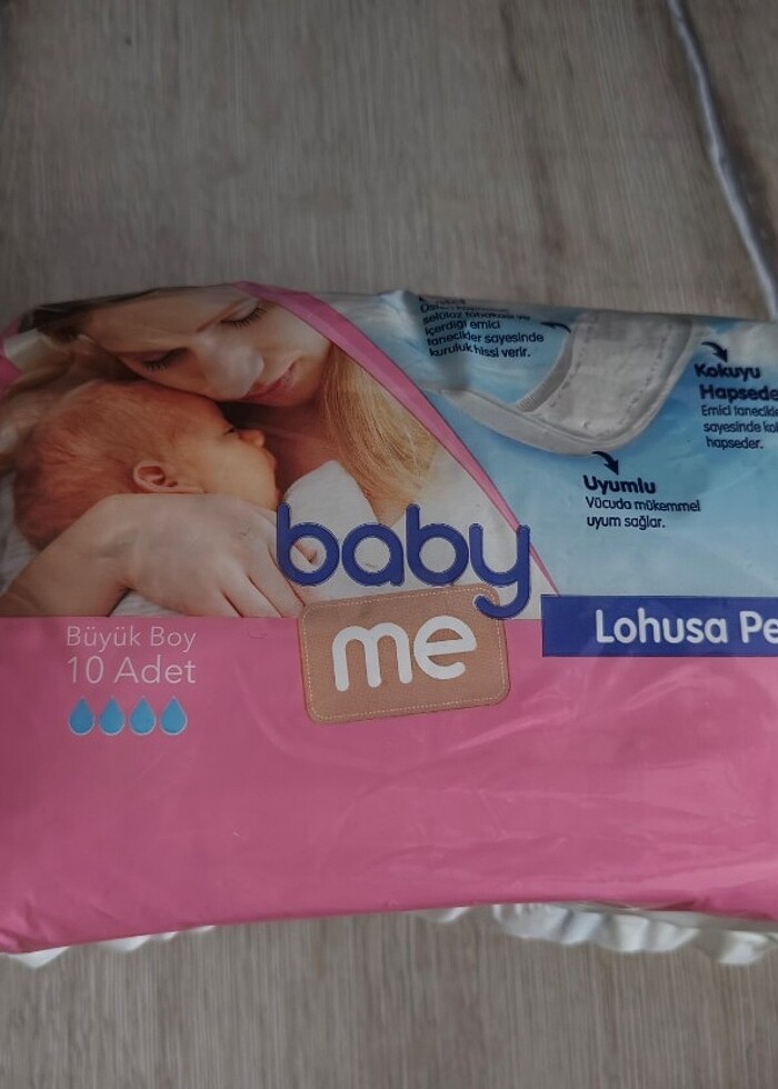 E bebeğim kendi markası olan baby me nin lohuha pedidir. İçinden 1 tane kullandım sadece ihtiyacım kalmağı için paketin ağzı kapalı şekilde alıcısı na hayırlı olsun