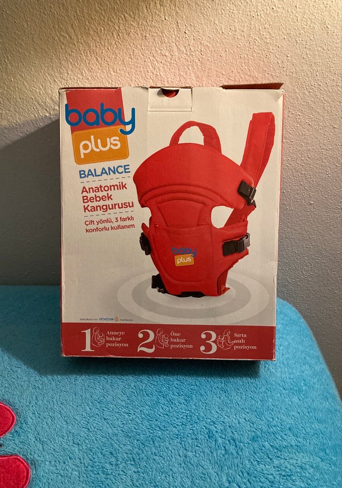 Baby Plus Anatomik kırmızı bebek kangurusu, üç farklı taşıma pozisyonu ve ayarlanabilir askılarla bebeğin rahatını sağlar.