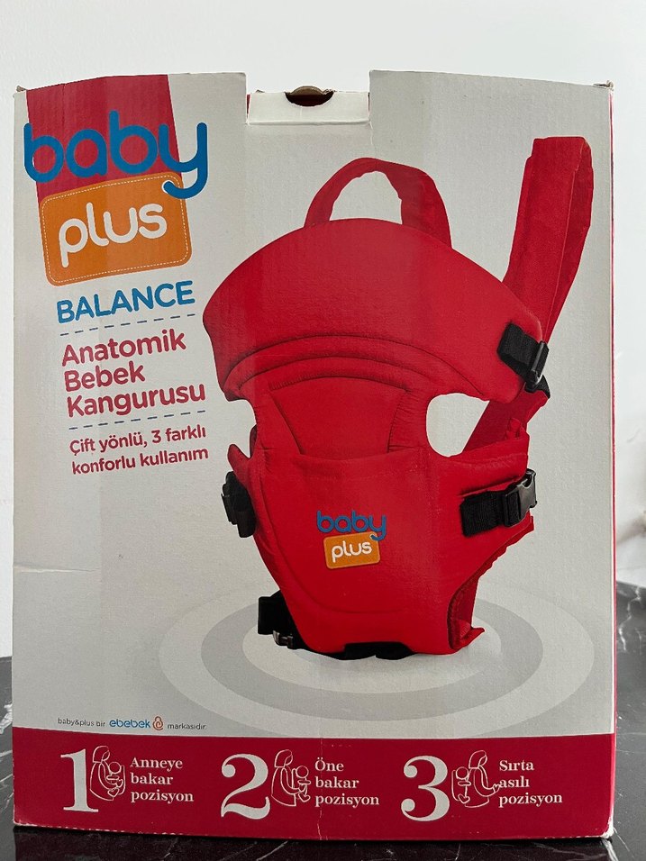 Baby Plus kırmızı bebek kangurusu, anneye bakar, öne bakar ve sırta yaslı olmak üzere üç konforlu taşıma pozisyonu sunar. Anatomik ve kullanımı kolaydır.