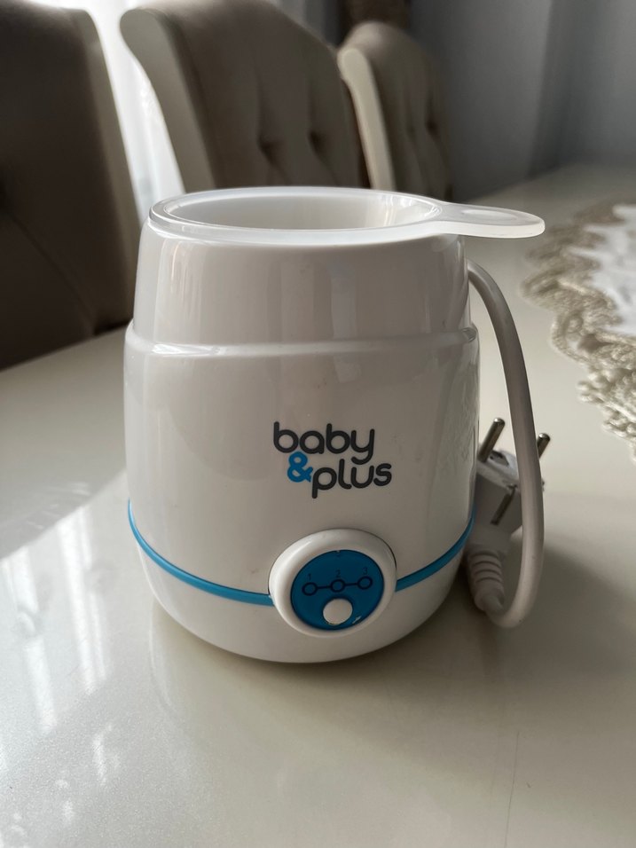 Baby & Plus beyaz ve gri renkli bebek mama ısıtıcısı, kolay sıcaklık ayarı için basit bir düğme kontrolüne sahiptir. Kompakt yapıda ve güç kablosu ile kullanıma uygundur.