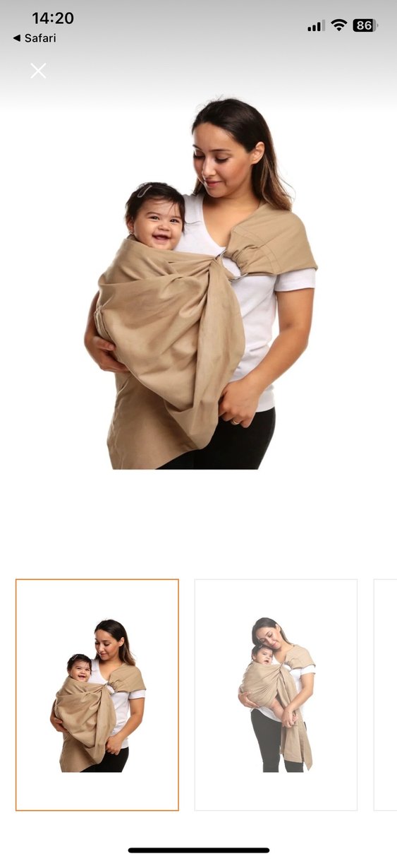 Hafif bej renkli bebek slingi, konforlu ve güvenli taşıma sağlar. Yumuşak kumaşıyla hem bebek hem ebeveyn için nazik destek sunar. Sadece 1 kere kullanabildim tertemiz