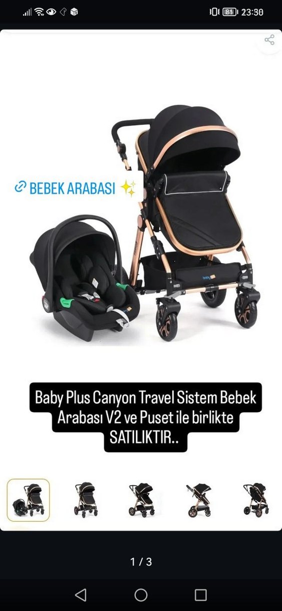Siyah Baby Plus Canyon Travel Sistem bebek arabası. Rahat ve güvenli seyahat sağlar. Puset SATILMIŞTIR