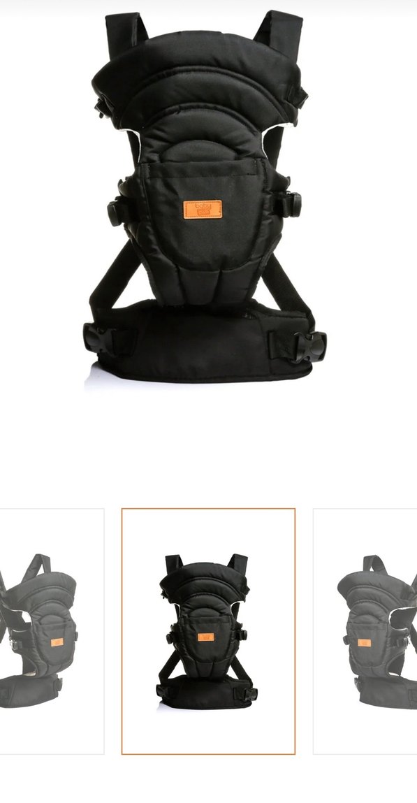 Ayarlanabilir kayışlara ve konforlu taşıma için dolgulu desteğe sahip siyah bebek taşıyıcı. Ağırlığı eşit dağıtır.