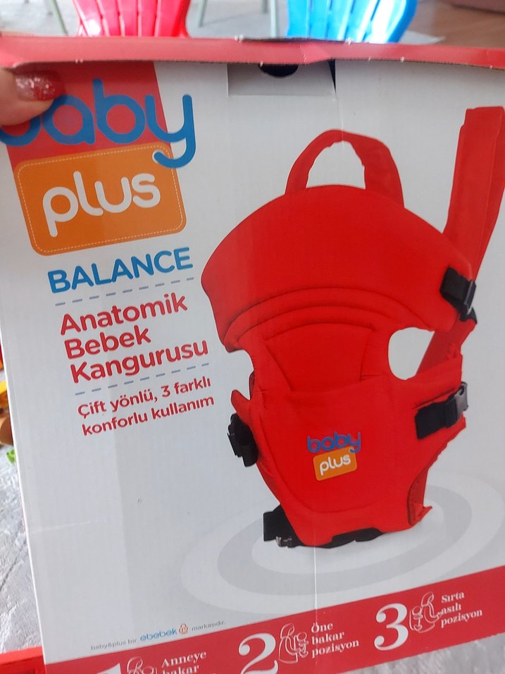 Baby Plus kırmızı bebek kangurusu, üç farklı konforlu pozisyon ve çift yönlü kullanım sunar. Ayarlanabilir kayışlarla ergonomik taşıma sağlar.