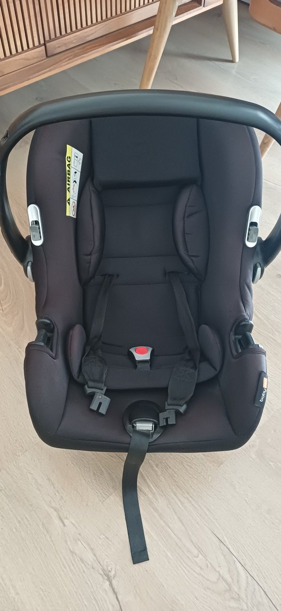 Siyah renkte, güvenli kemer sistemi ve yumuşak yan desteklere sahip bebek oto koltuğu. Taşıma sapı bulunur. Markası Baby Plus