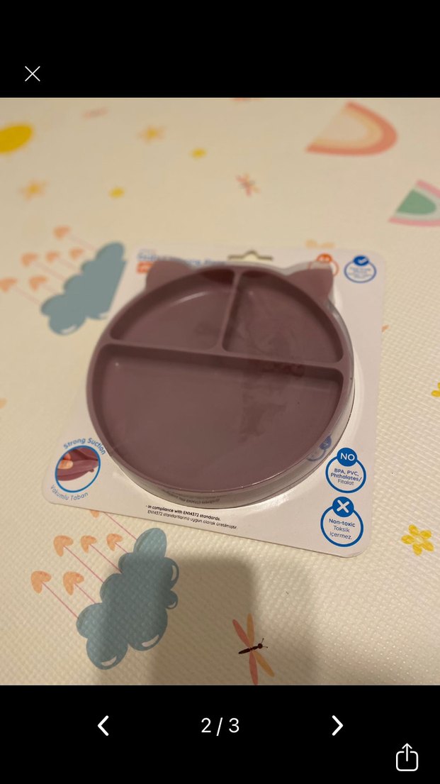 BPA ve PVC içermeyen, güvenli malzemeden yapılmış koyu kahverengi bölmeli çocuk tabağı. ️