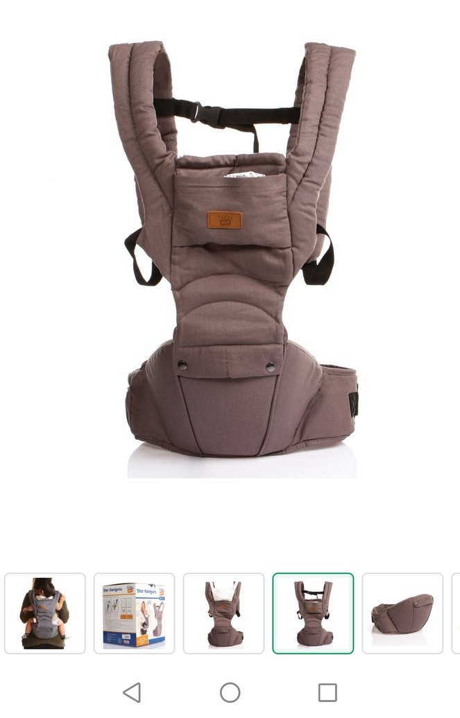 Bej renkli, yumuşak kumaşlı bebek taşıyıcı. Ayarlanabilir omuz ve bel destekleri rahat taşıma sağlar.