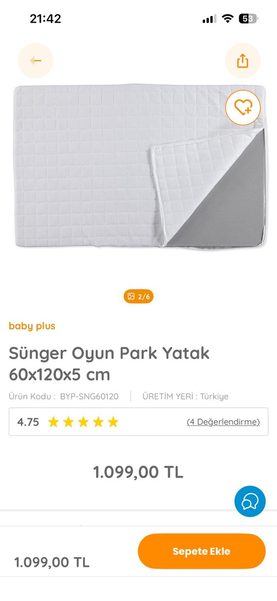 Baby Plus Sünger Oyun Park Yatak 60x120x5 cm