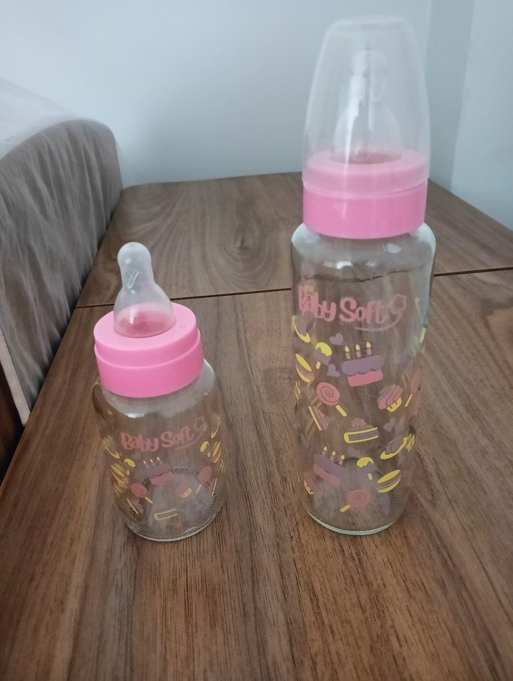 Pastel pembe renkli, yumuşak silikon emzikli, eğlenceli desenli iki bebek biberon seti. Hijyen için koruyucu kapaklıdır. Biberon ucunda hiç bir deforme ısırık yoktur kullanılmadı denedim ama kızım içemedi.