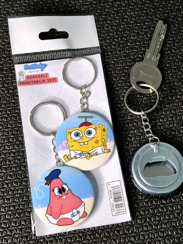 Bebek SüngerBob SpongeBob Squarepants yıldız star Patrick, arka yönleri şişe kapağı açacaklı metal anahtarlık seti. Çapları 4.4 cm olup kompakt boyutlara sahiptirler. Yüksek kaliteli baskı içerir. Sıfır paketinde gönderilmektedir. Stok sorunu olmayıp çoklu sipariş isteyebilirsiniz. ✅