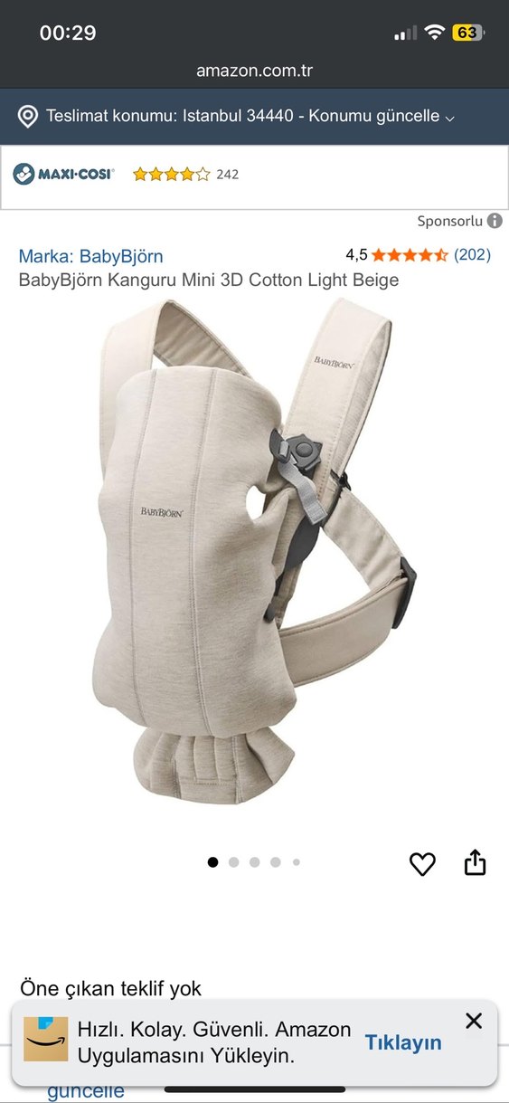 BabyBjörn Mini 3D Pamuklu bebek kangurusu, yumuşak ve nefes alan kumaş, ayarlanabilir askılarla konfor sağlar. Yenidoğanlar için güvenli destek sunar. Mayıs 2025 de alındı