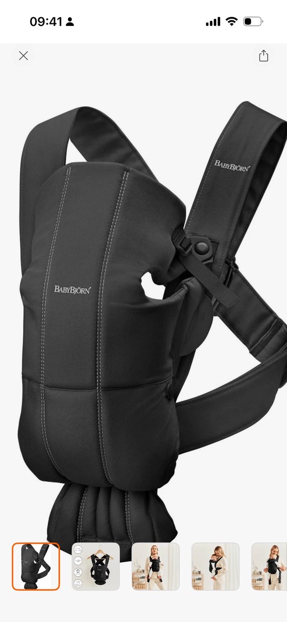 BabyBjörn siyah bebek taşıyıcı, rahat ve güvenli destek sağlar. Ayarlanabilir askıları ve yumuşak dolgusu ile konfor sunar.