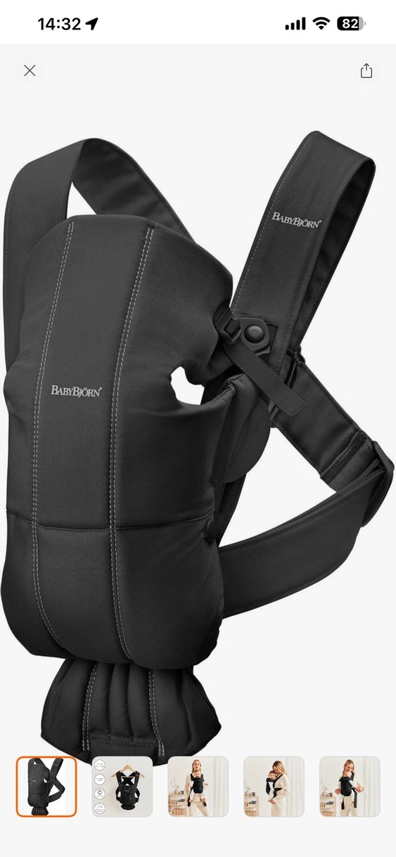 Hiç kullanılmadı, etiketli. BabyBjörn siyah bebek taşıyıcı, yastıklı askılar ve ergonomik tasarıma sahiptir. Ön ve askılarda BABYBJÖRN logosu bulunur.