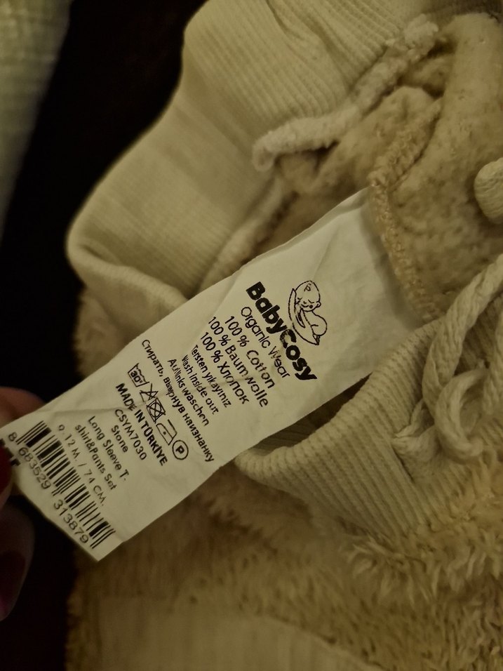 Babycosy bebek %100 organik pamuk ve yünden üretilmiş, yumuşak ve doğal, bebeğin konforu için ideal.