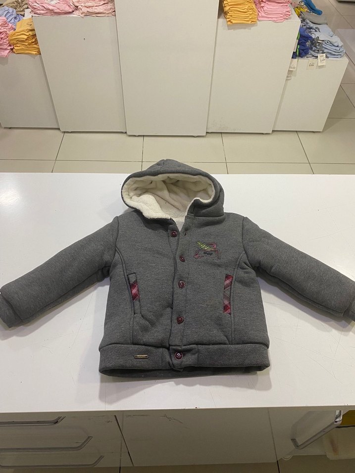 Kapüşonlu ve düğmeli, araba işlemeli desenli gri çocuk ceketi. Rahat ve sıcak dokusu ile şık bir sokak stili seçeneği. 9-12 ay 12-18 ay 3-4 yaş 4-5 yaş bedenleri mevcuttur. Sipariş verirken beden belirtmeniz rica edilir.