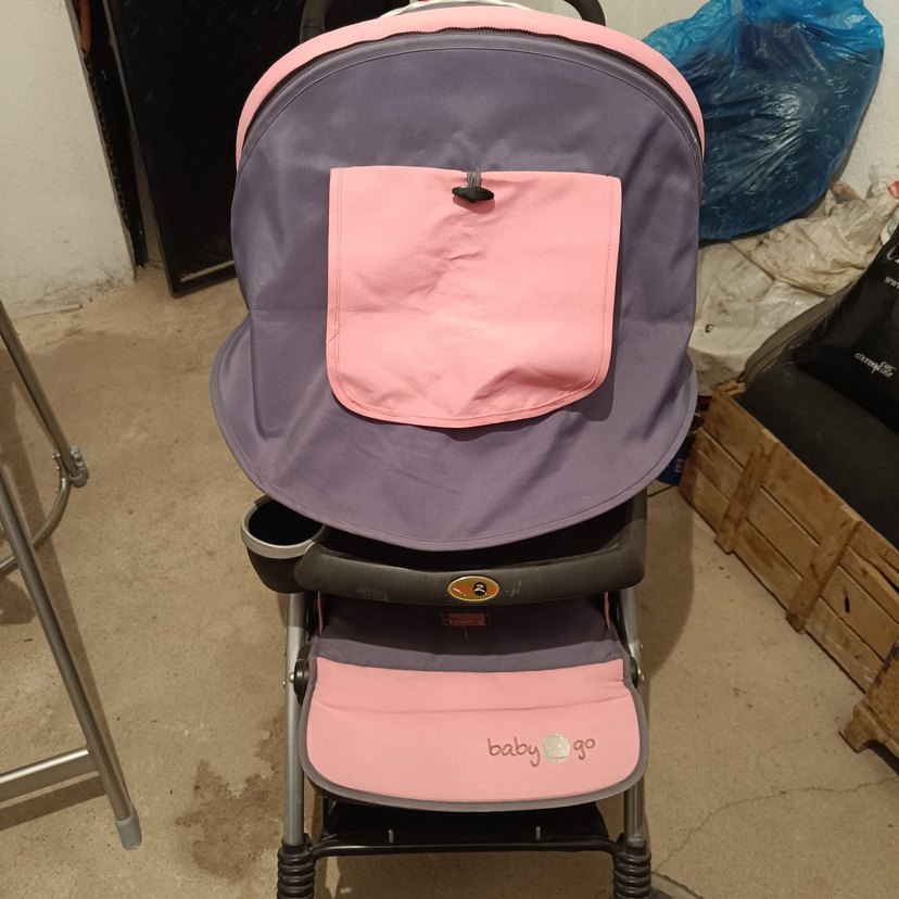 BabyGo bebek arabası, pembe ve gri yumuşak kumaşı, ön cebi ve sağlam yapısıyla rahat kullanım sunar. sadece silinecek ve resimde belirttim kontrol noylonu yırtık bu yüzden uygun veriyorum