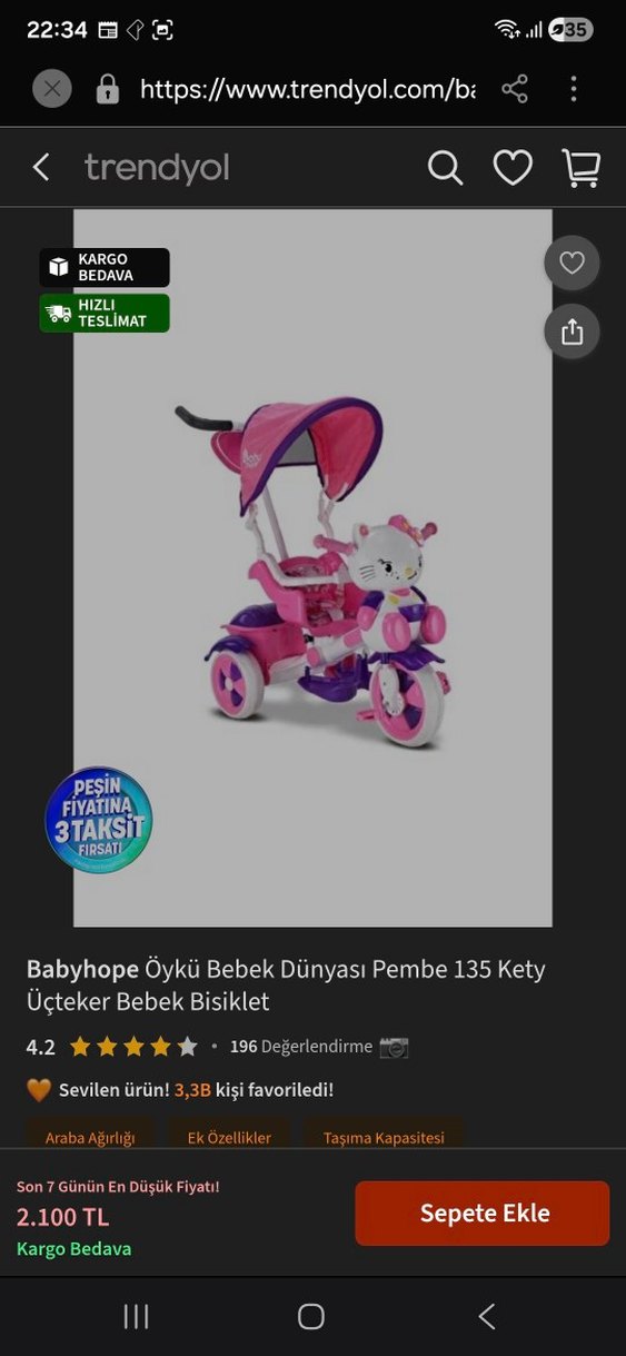 Babyhope Öykü pembe üç tekerlekli bebek bisikleti, renkli tasarım, güneşlik ve konforlu oturma alanı sunar. Üç tekerlekle dengeli sürüş sağlar. Ön taraftaki plastiğe düştü sadece Kullanıma sürmeye engel değil