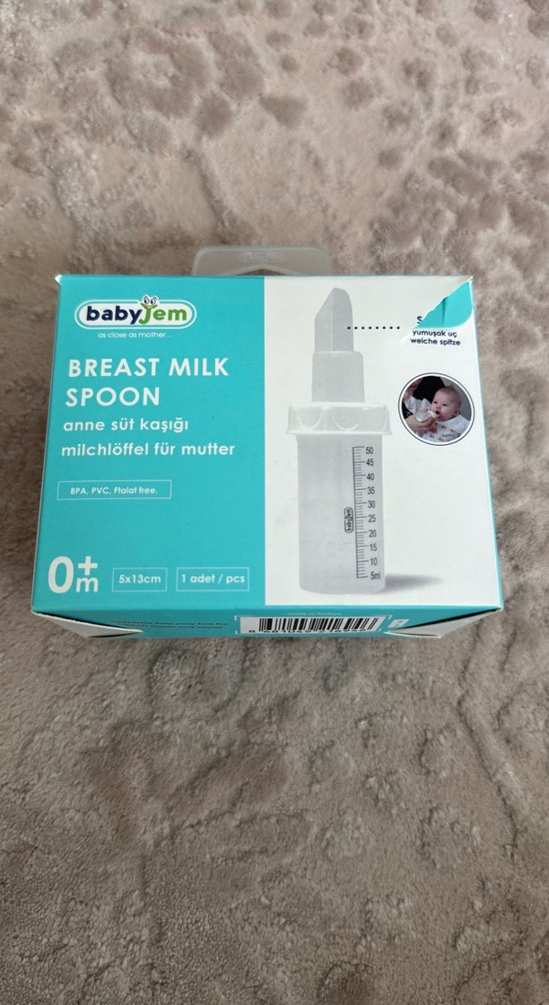 babyJem anne süt kaşığı, pastel bej renkte, 5x13 cm ölçüsünde. BPA ve PVC içermez, doğumdan itibaren kullanıma uygundur. Yumuşak uçlu.sadece bir kaç defa kullanıldı.