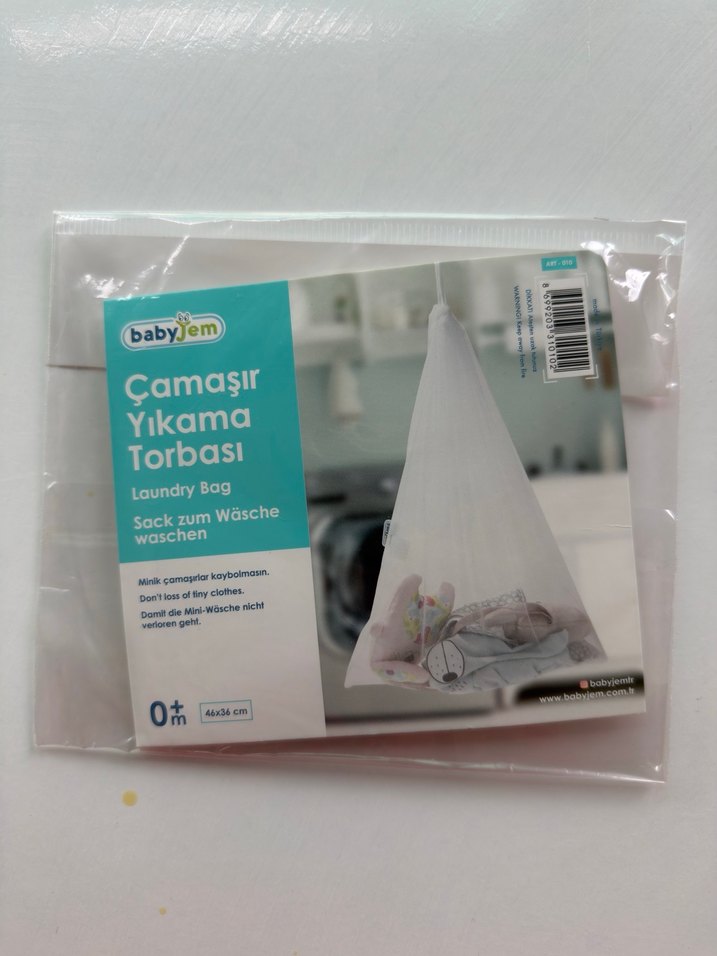BabyJem markalı, pastel tonlarda baskılı çamaşır yıkama torbası. Hassas kıyafetleri korur, 44x44 cm ölçülerindedir.