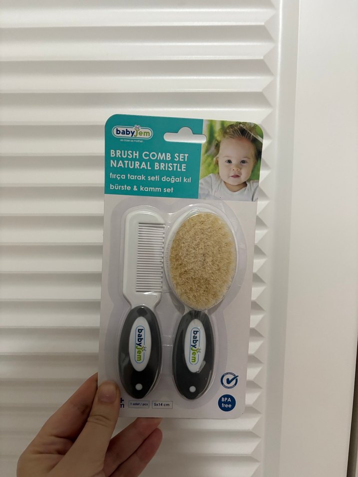 Babyjem doğal kıllı fırça ve tarak seti, bebekler için nazik ve güvenli kullanım sağlar. BPA içermeyen sapları rahatlık sunar.