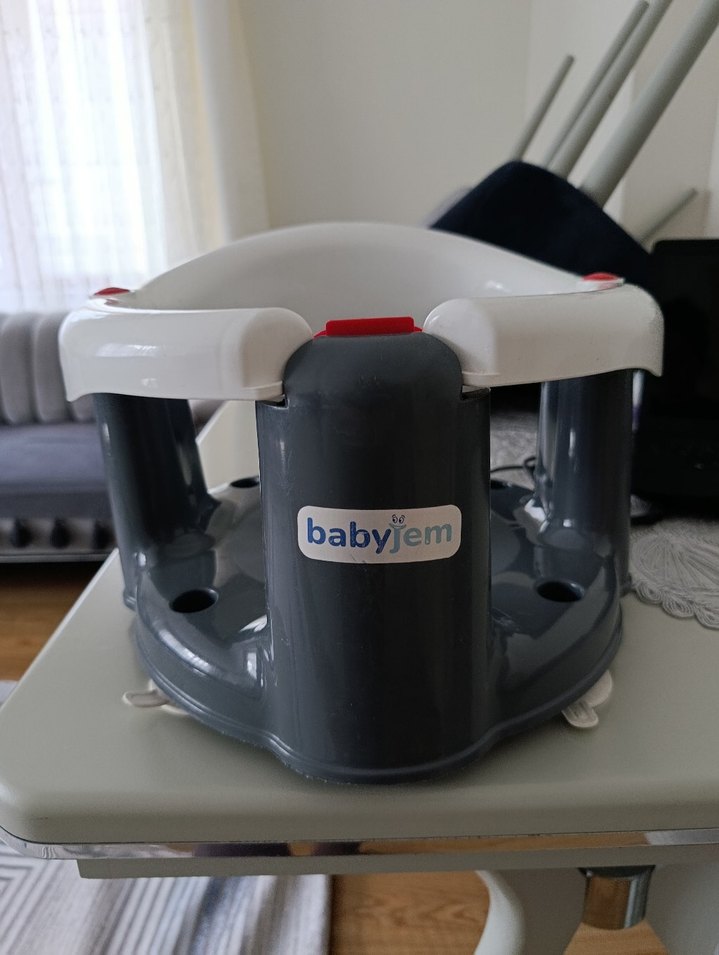 Babyjem markalı gri bebek mama sandalyesi, sağlam yapısı ve güvenli kilit sistemiyle yemek zamanları için güvenlidir. ️