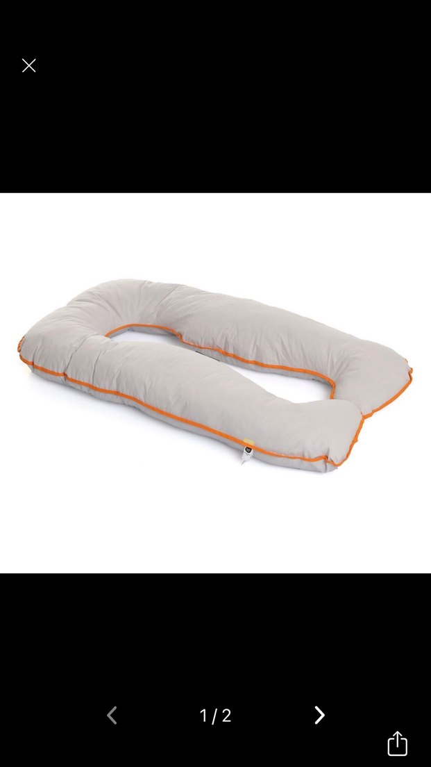 Bej ve gri renklerde, turuncu şerit detaylı, yumuşak ve desensiz hamile ve emzirme yastığıdır. 1 kere kullanılmadı babyjem
