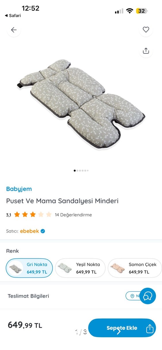 Babyjem Gri Nokta Puset ve Mama Sandalyesi Minderi