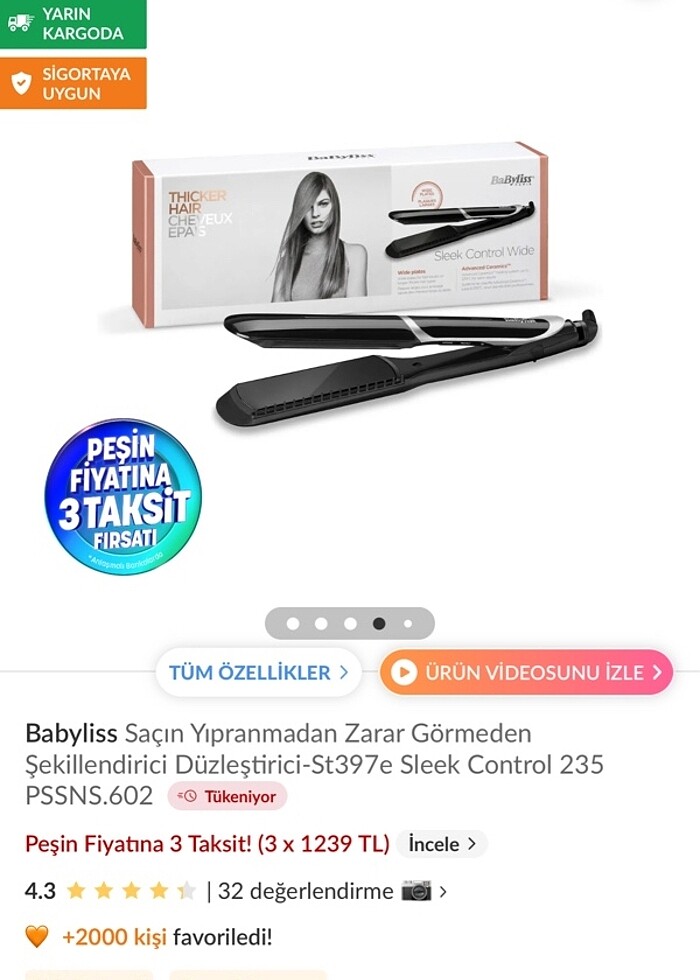 Babyliss düzleştirici Orjinal kutulu ürün