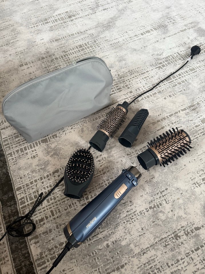 Saç şekillendirici seti, farklı fırça başlıkları ve taşıma çantası ile çeşitli saç şekillendirme seçenekleri sunar. Garantisi var, Dyson alındığı için satıyoruz birkaç ay a az miktarda kullanıldı hiçbir sorunu yok.✨
