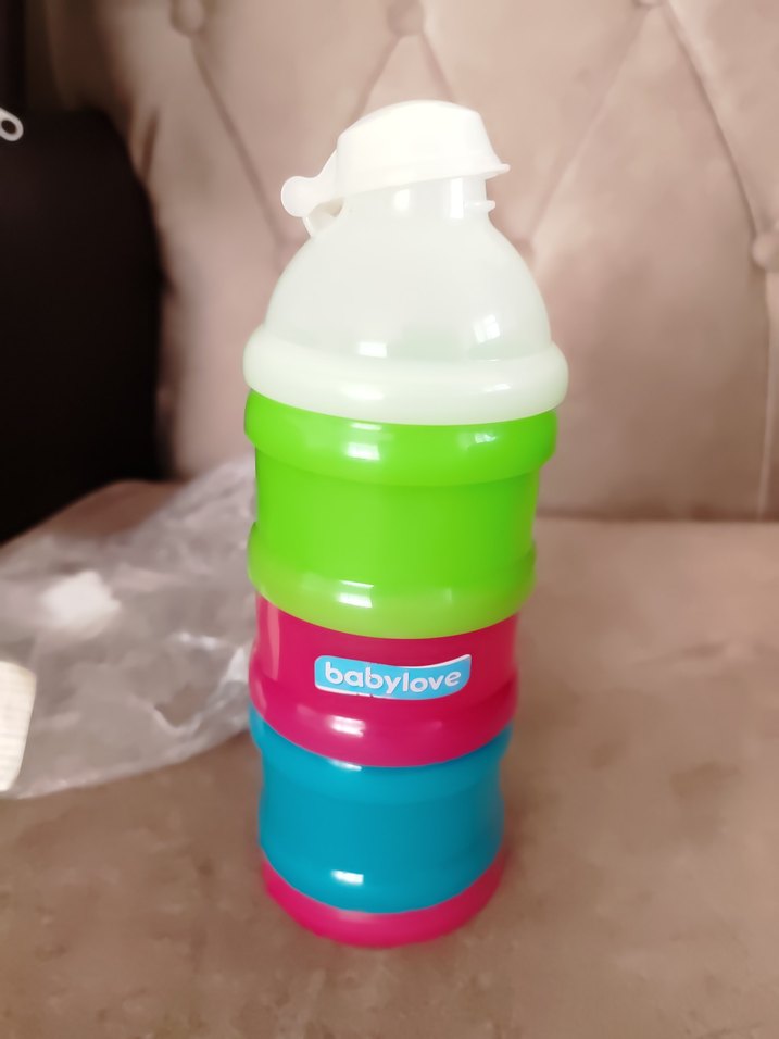 Babylove renkli, çok bölmeli ve beyaz kapaklı bebek biberonudur. Bebek beslemek için kullanışlı ve kolay tutulur.