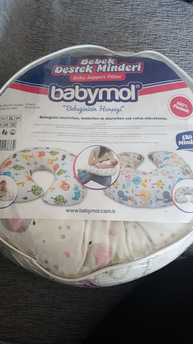Babymol bebek destek minderi pastel çok renkli baskılıdır. Emzirirken, beslerken ve otururken rahatlık sağlar. %100 pamuklu, kullanımı kolaydır. yan yatirma yastigiyla gondericem hic kullanilmamistir.