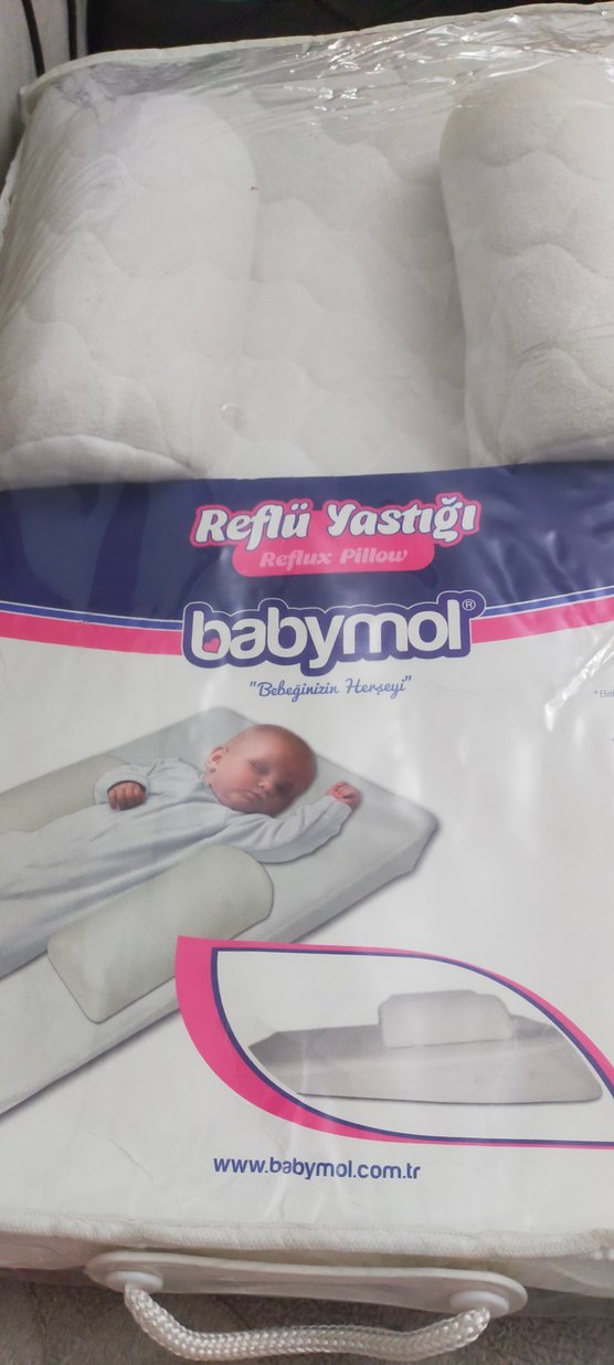 Babymol reflü yastığı, pastel beyaz renkte ve desenli tasarıma sahip, bebekler için konforlu destek sağlar. Yumuşak ve nazik malzeme reflü belirtilerini azaltmaya yardımcı olur.