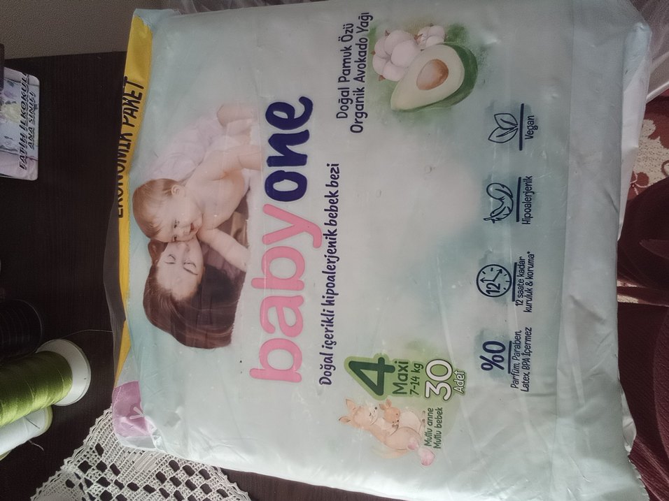 BabyOne bebek bezleri doğal pamuk ve organik avokado yağı içerir. 7-18 kg bebekler için Maxi 4 beden, 20 adet paket. içinden 10 adet kullanıldı
