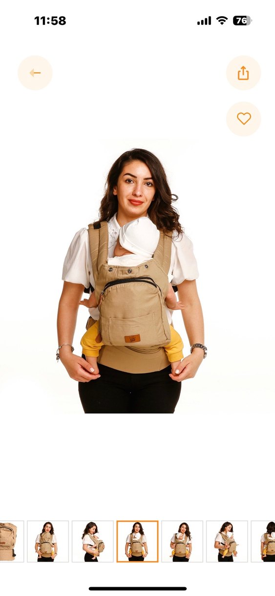 Ayarlanabilir askılı, ön cepli bej renkli bebek taşıyıcı kanguru. Rahatlık ve destek sağlar. Açık tonlu renk günlük kullanıma uygun. Bir sefer bebeğim küçükken havaalanında kullanmıştım.