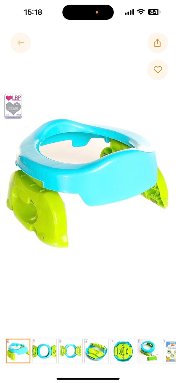 Renkli turkuaz ve yeşil tasarımlı katlanır lazımlık ve klozet adaptörü. İster klozet üstünde kullanabilir isterseniz seyahatlerde tuvalete yeni alışan bebeğiniz için lazımlık olarak kullanın poşeti ve ıslak mendili de mevcut. Lazımlık olarak kullanmak için poşet geçirmek gerekli. (Islak mendili hiç açılmadı bayadır kullanılmayan ürün olduğu için durumu nedir bilemiyorum).