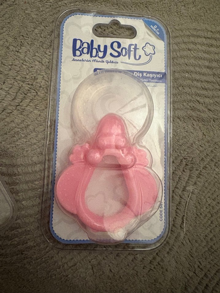 BabySoft pembe renkte, bebeklerin diş etlerini rahatlatmak için tasarlanmış yumuşak diş kaşıyıcı. Bebekler için uygundur.