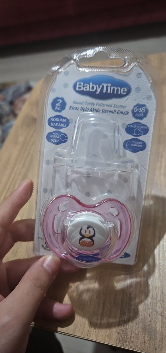 BabyTime markalı, koruma kapaklı, kiraz uçlu akide desenli pastel pembe emzik. 6-18 ay arası kullanıma uygundur. Bpa içermez.