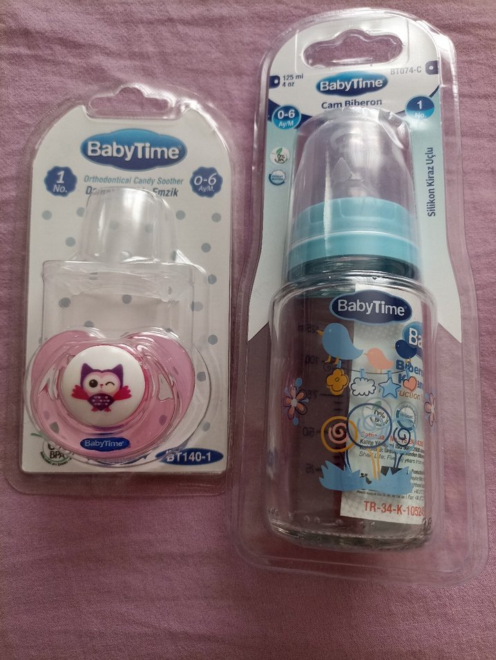 BabyTime Pembe Emzik ve Cam Biberon Seti