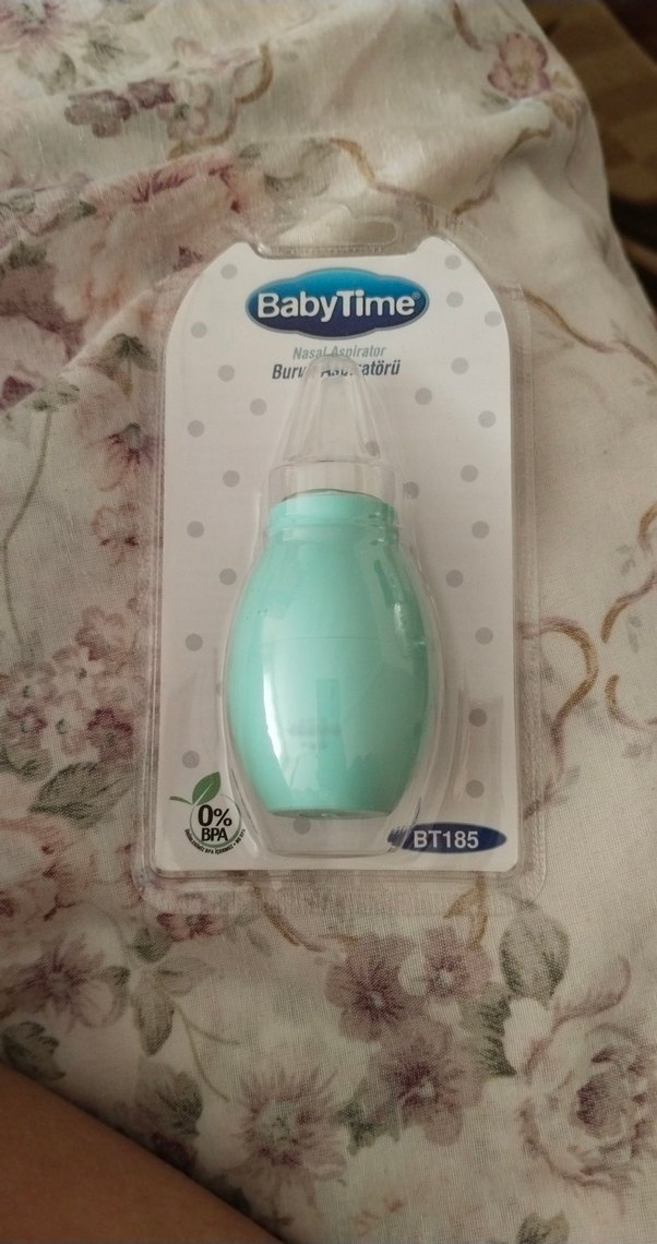 BabyTime markasının turkuaz renkli burun aspiratörü, nazik temizlik için tasarlanmıştır. BPA içermez, model BT185.