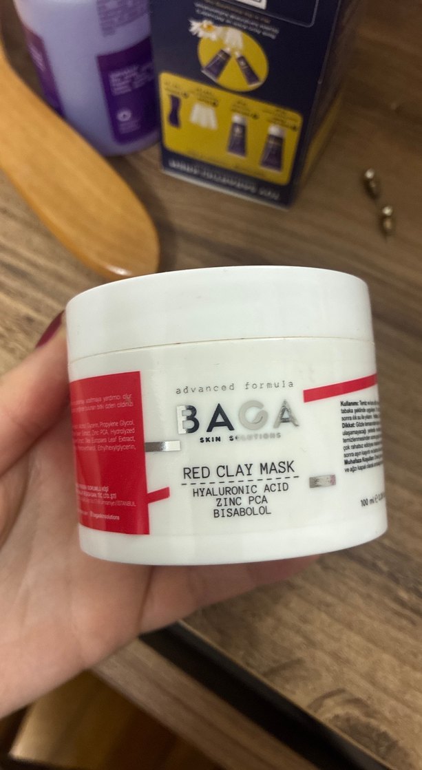 BACA Kırmızı Kil Maskesi, hyaluronik asit, çinko PCA ve bisabolol içerir. Cildi besleyip canlandıran gelişmiş formüle sahiptir.