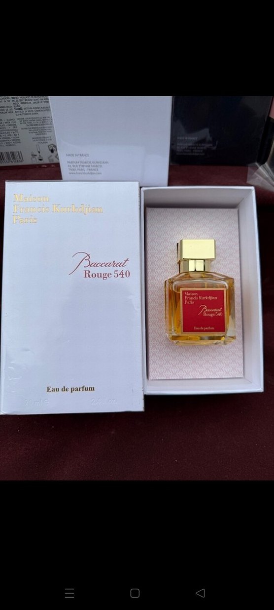 Maison Francis Kurkdjian imzalı Baccarat Rouge 540 Eau de Parfum, 70 ml şişede lüks bir koku sunar. Şık kutusunda yer alır.