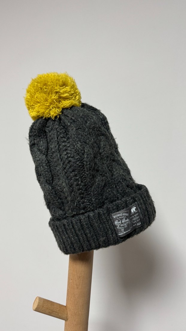 Kadın Gri Örgü Yün Bere Sarı Ponponlu. Temiz defosuz