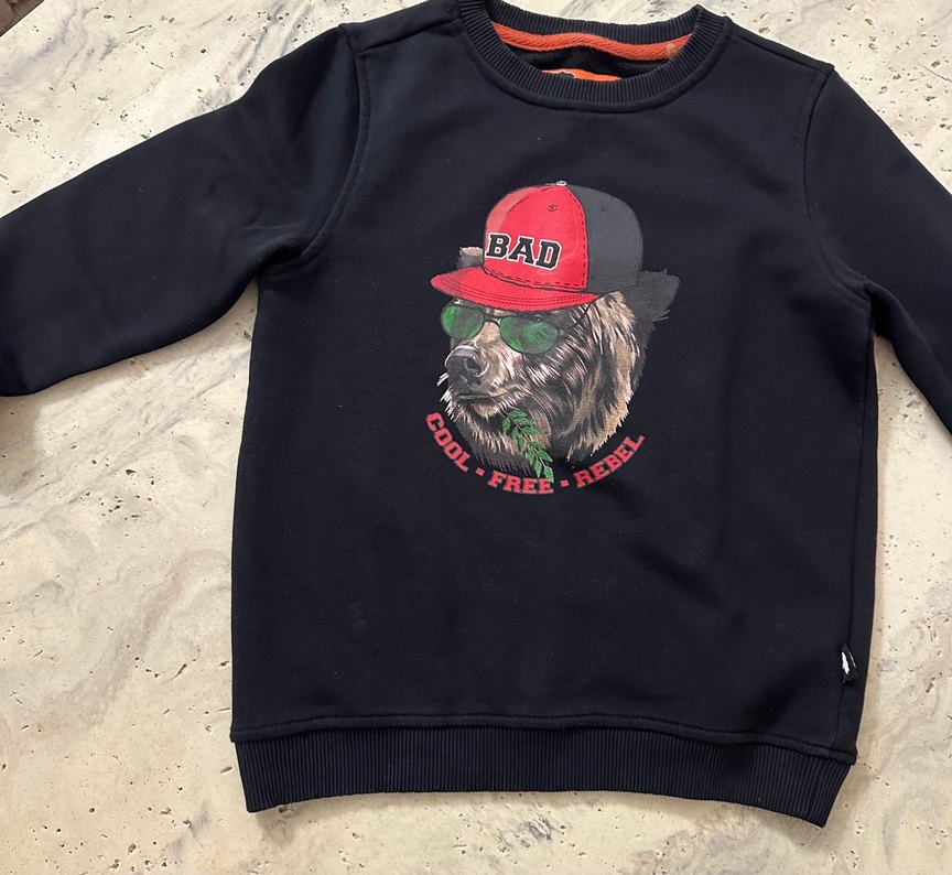 ORJİNAL ÜRÜN -BAD BEAR -Siyah, kapüşonsuz, uzun kollu ve bol kesim erkek sweatshirt. Kürk detaylı köpek baskısı ve BAD yazısı bulunur. Yumuşak ve sıcak kumaştan üretilmiştir. 7-8 yaş