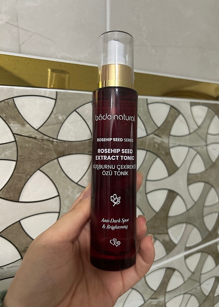 Leke ve gözenek için tonik sprey şeklinde ve cam şişe sonrasında kullanılabilirde ürünün miktarı gözüküyor bir kere kullandım