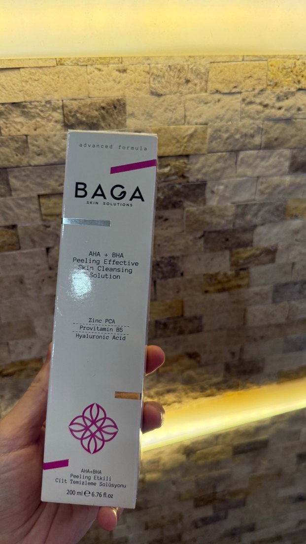 BAGA anti-aging serumu, AHA ve BHA ile etkili peeling ve cilt temizliği sağlar. İçeriğinde Zinc PCA, Provitamin B5 ve Hyaluronik Asit bulunur.
