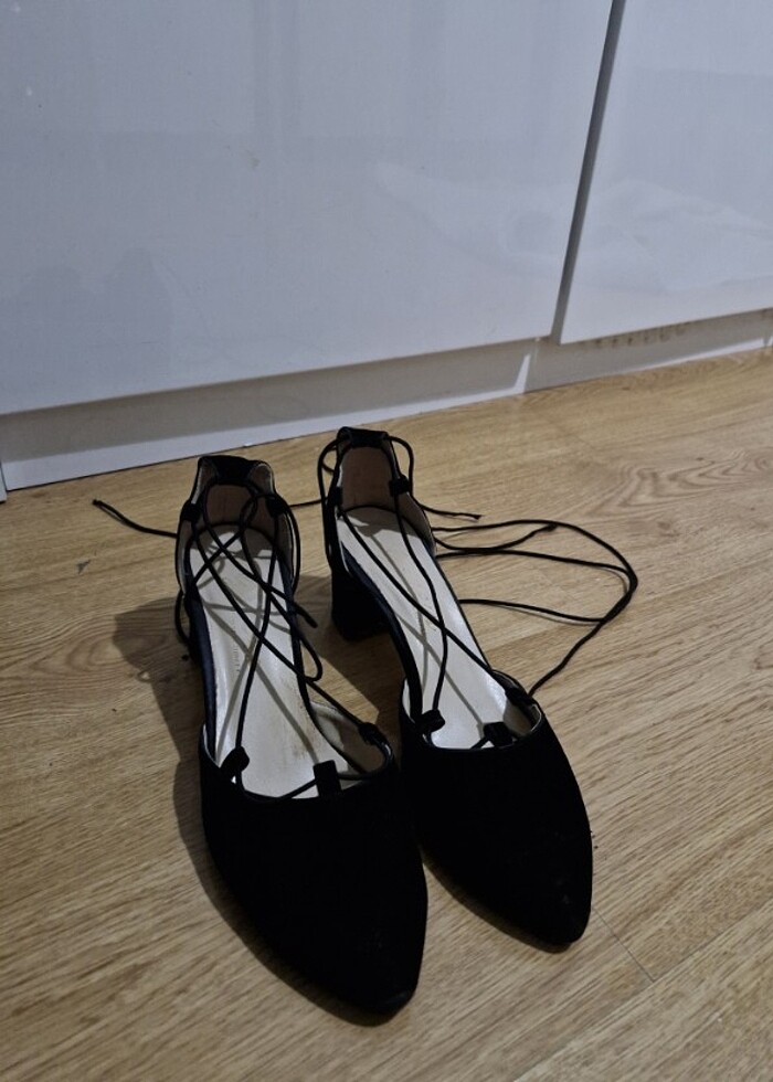 Bağcıklı bağlamalı topuklu ayakkabı